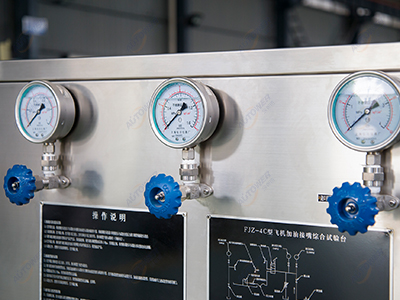 FJZ-4A型飛機加油接頭綜合試驗臺是為滿足偏遠(yuǎn)地區(qū)或者不便于提供電源的現(xiàn)場測試各型飛機壓力加油接頭性能及飛機加油膠管耐壓試驗要求而專門進(jìn)行設(shè)計的一款試驗設(shè)備。它能準(zhǔn)確輸出和檢測試驗過程中的各種壓力,測試精度滿足技術(shù)要求。該設(shè)備具有性能可靠,操作簡便,移動性強,不帶電提供壓力,可擴展測試其它管路及閥門等特點。試驗臺整體采用不銹鋼材質(zhì),試驗臺管路均為不銹鋼管路,滿足各種惡劣環(huán)境下的工作要求,是一臺具有一定通用性的航煤綜合測試設(shè)備。